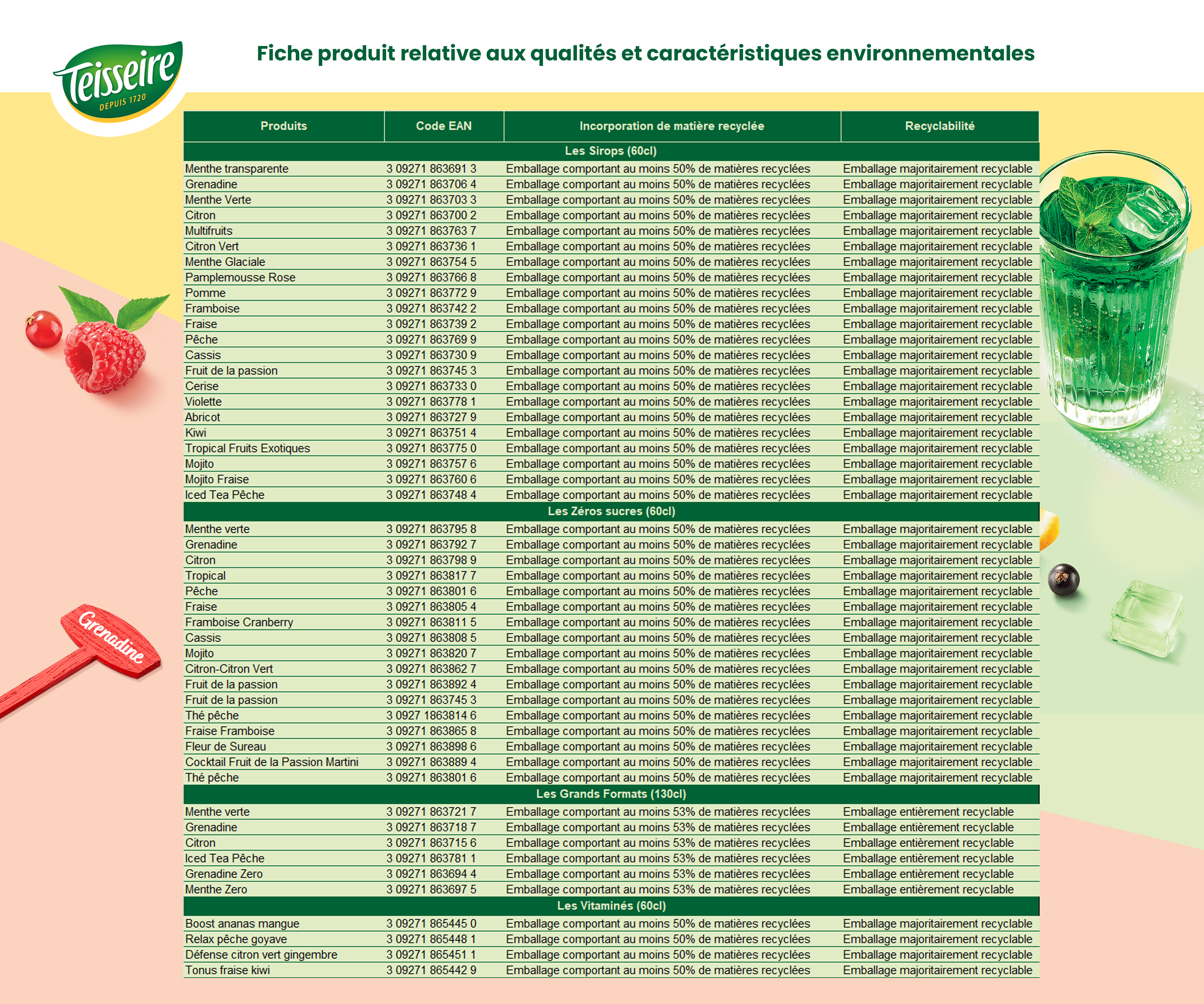 Vous pouvez remplacer le sirop de citron vert par le sirop de menthe Teisseire ou par le citron/citron vert Teisseire zéro sucres pour une version allégée.
